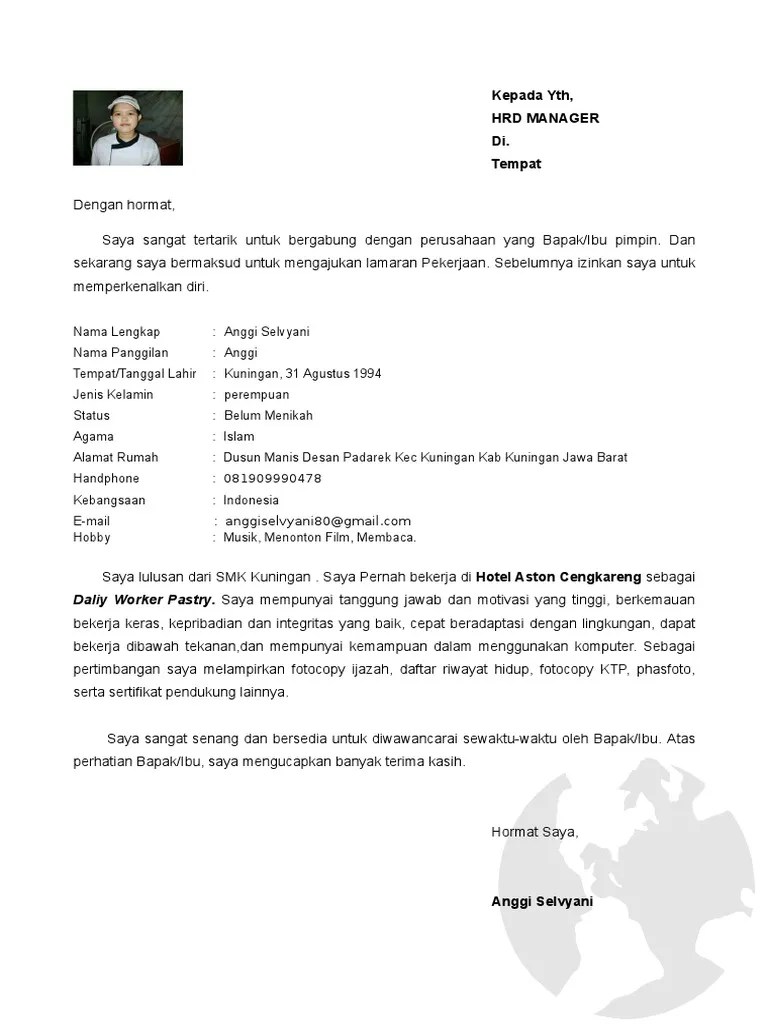 Dengan adanya surat lamaran kerja, pihak penyedia lowongan pekerjaan dapat menentukan layak atau tidaknya seseorang untuk bekerja di tempat tersebut. Contoh surat lamaran pekerjaan di hotel bagian gardener. Adapun data diri saya sebagai berikut membuat surat lamarannya pun harus baik dan benar. Maka anda harus memahami terlebih … Dengan ini mengajukan surat lamaran pekerjaan kepada bapak / ibu pimpinan untuk diterima menjadi karyawan di perusahaan yang kepada yth, kepala bagian personalia aston bali resort. Seperti kita ketahui bahwa di hotel ada berbagai macam posisi pekerjaan yang bisa disediakan, seperti bagian kitchen, waiter, receptionist, housekeeping, room boy, front office, f. 21 contoh surat lamaran kerja di hotel lengkap dengan posisinya contoh surat. Contoh surat lamaran kerja pabrik kelapa sawit nusagates. Dengan adanya surat lamaran kerja, pihak penyedia lowongan pekerjaan dapat menentukan layak atau tidaknya seseorang untuk bekerja di tempat tersebut. Contoh surat lamaran kerja yang baik dan benar untuk dijadikan referensi dalam usaha mencari kerja di sebuah perusahaan sesuai dengan keahlian kamu. Contoh surat lamaran pekerjaan di hotel bagian gardener. Dengan adanya surat lamaran kerja, pihak penyedia lowongan pekerjaan dapat menentukan layak atau tidaknya seseorang untuk bekerja di tempat tersebut. Surat lamaran pekerjaan adalah salah satu surat resmi yang.